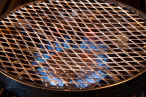 The weather around here is still hot, but the smell of autumn is already in the air. That’s because the chile roasters have set up their stands around the city and have big burlap bags bursting with green chiles to be roasted. There are a couple of popular kinds – Hatch chiles from southern New Mexico and Chimayós from the northern mountains. Whatever the source, the process is the same: the vendor fills up a big mesh cage with fresh chiles and then turns the cage over a blazing hot fire from a blow torch or some other propane-driven device. Gradually the chiles become charred black, and the wonderful, tell-tale aroma wafts into the breezes filling the whole city with this unique smell of early autumn. Then you buy a plastic bag filled with chiles of your choice – mild to incendiary – and take them home to peel and seed and chop (depending upon what you want to do with them) so that they can be frozen away for the winter’s supply for chiles rellenos, green chile cheeseburgers, or just salsa. Of course you can do all of the roasting at home, and many folks do, but we prefer to roast on a much smaller scale.