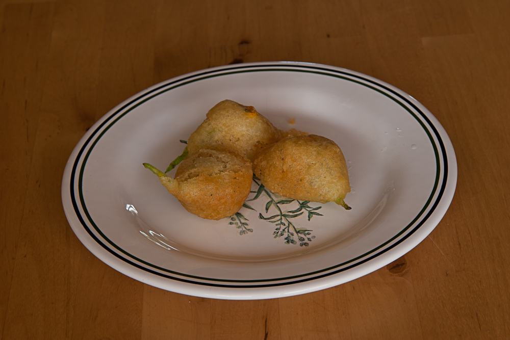 Fortunately, a device has been invented locally to let you roast just a few chiles as you need them. The Santa Fe School of Cooking, http://santafeschoolofcooking.com , sells a handy stove-top grill for $29.95. The grill is made of steel mesh stretched across a steel ring with two wooden handles to protect your fingers from the heat. In just a few minutes, you can heat up the grill, char a few chiles, and get ready for a real chile feast. We use the grill for our allotment of Hatch or Chimayó chiles, but we also use it to roast ordinary bell peppers for an easy and delicious appetizer.