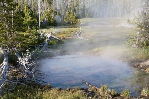 We learned another thing, too. We arose at dawn each day of our visit to visit the geyser basins, lakes and rivers. The wildlife was out, but the tourists were still asleep, and we had the park nearly to ourselves. By noon, the crowds had awakened and the crush of humanity was almost too much.