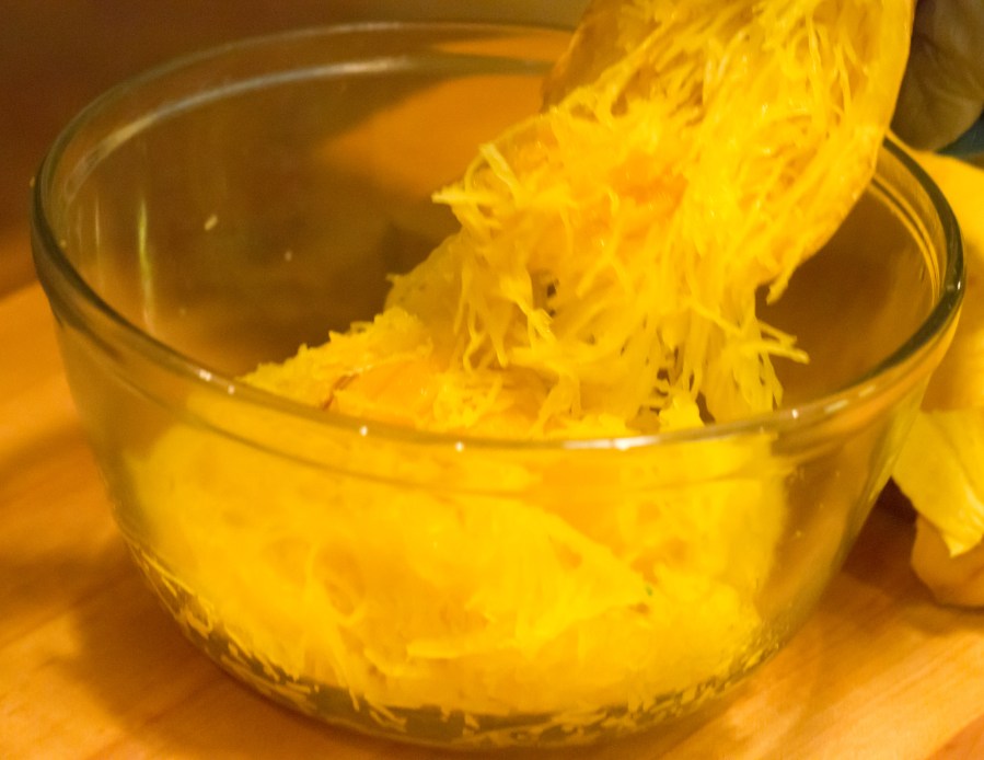SPAGHETTI SQUASH WITH PARMESAN AND POACHED EGGS
