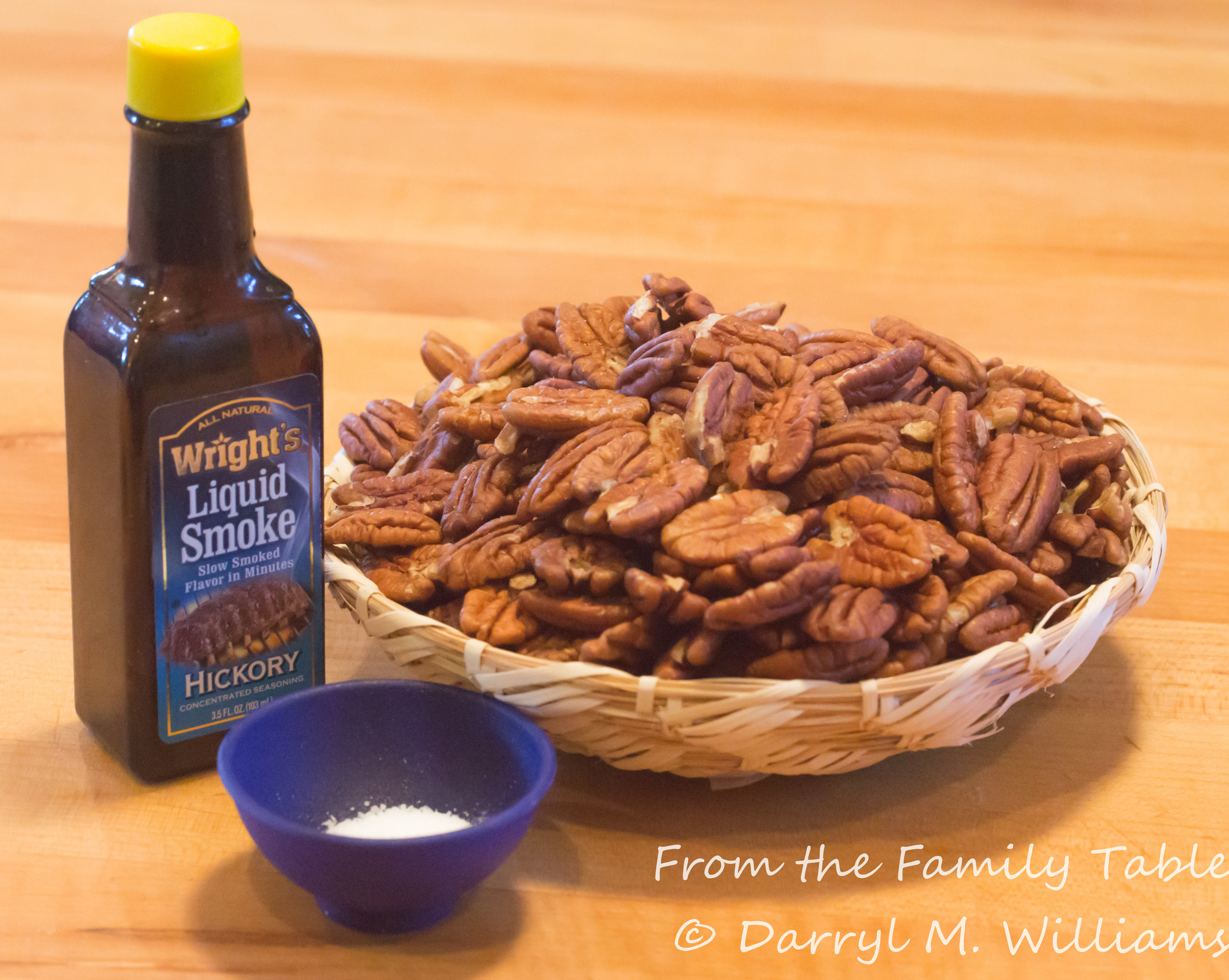 - Stir in the pecans with a slotted spoon. Let stand for 1 hours, stirring several times to make sure the pecans are completely coated with the liquid smoke mixture.