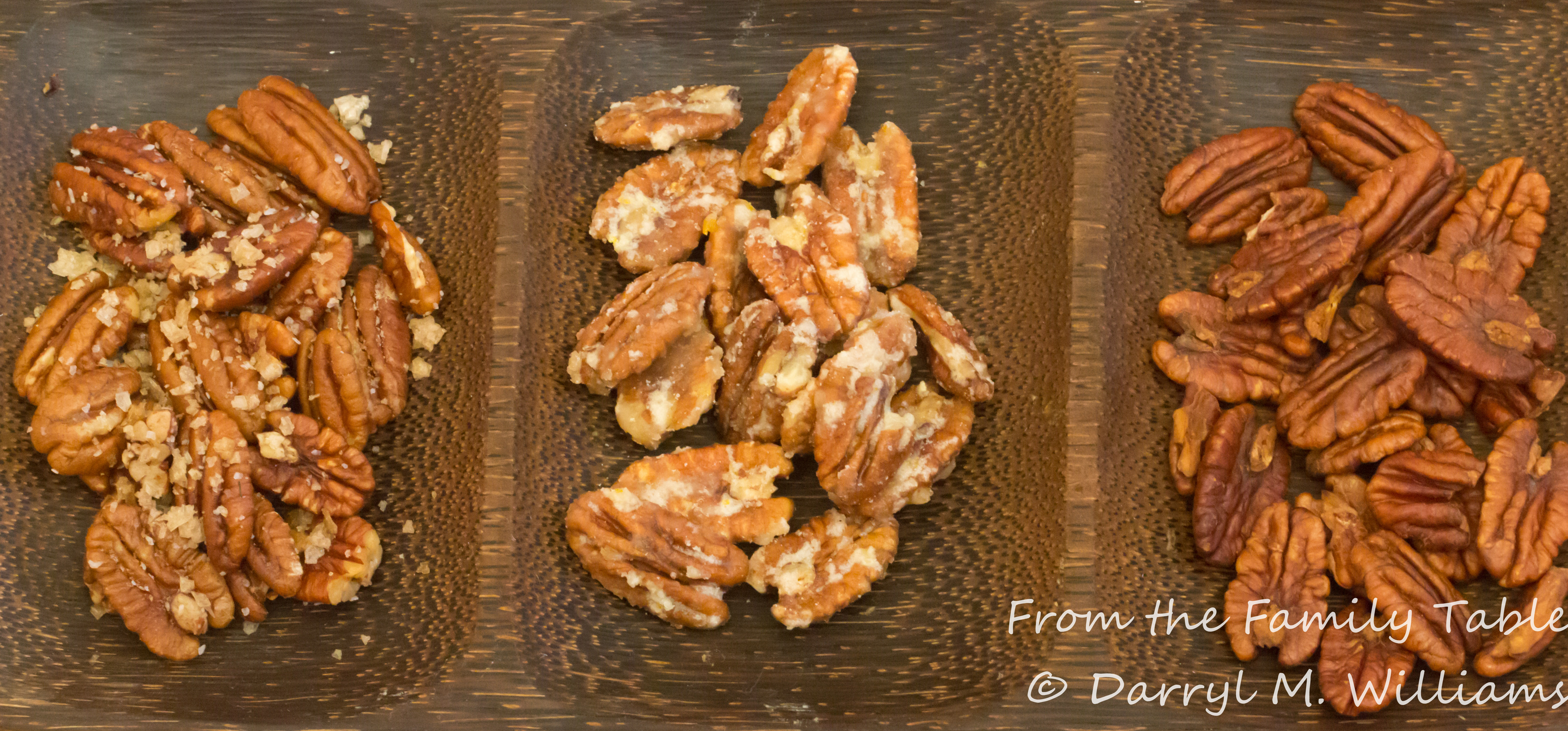 pecans, Karen’s orange pecans, Jean’s Texas barbecue pecans