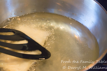 Immediately hold the dough under the surface of the oil with a spatula until it puffs up.