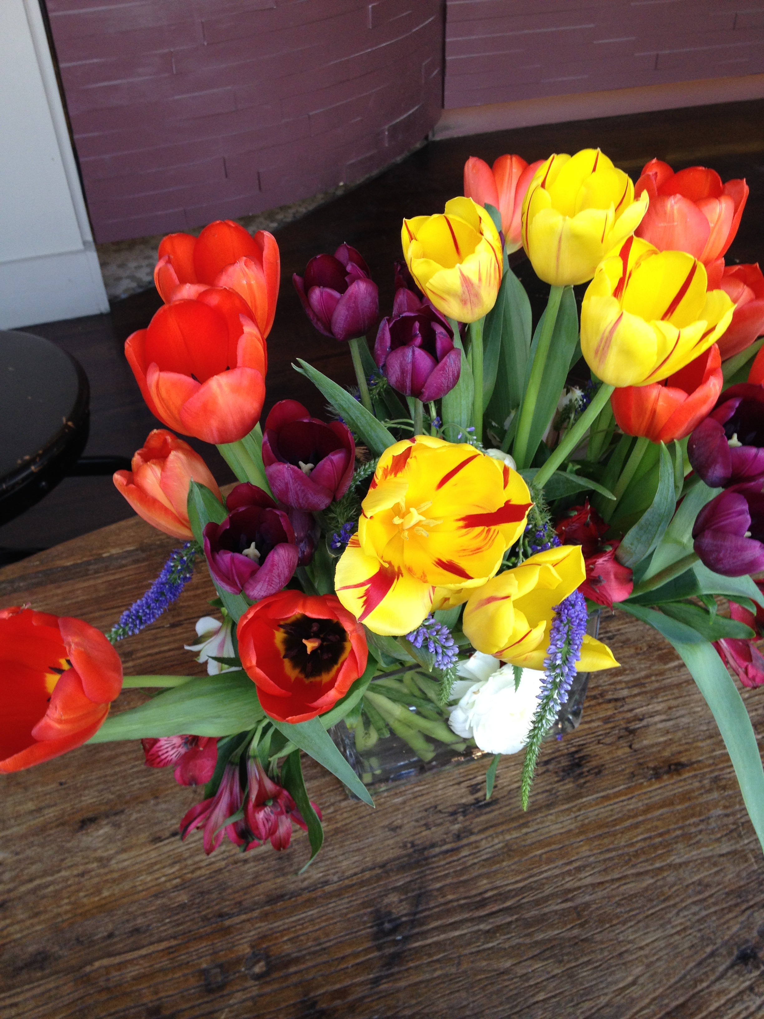 Fresh spring tulips on the table