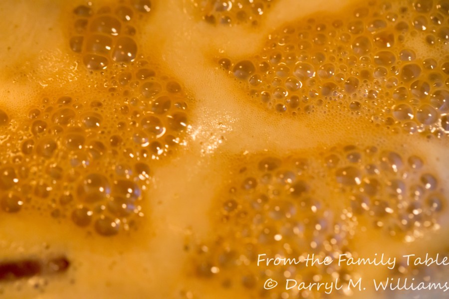 The bubbles get larger and glisten as the cooking nears completion