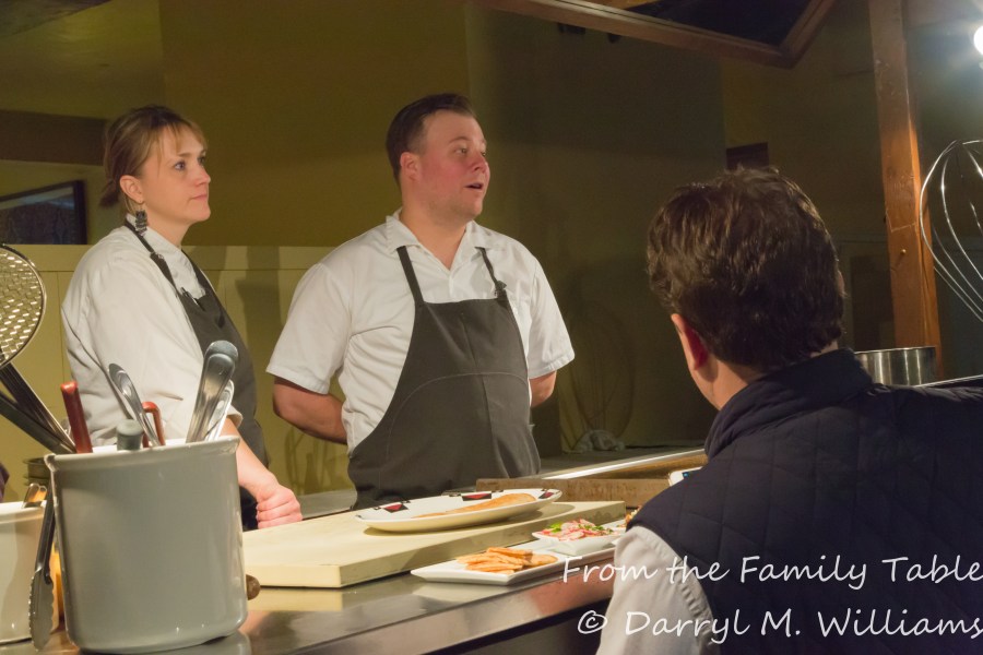 Sarah and Evan Rich in the demonstration kitchen answering a question from the audience