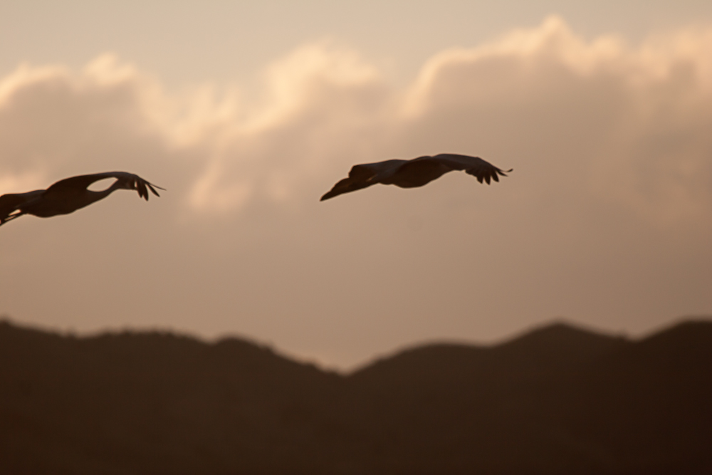 Sand hill cranes settling in for the night on the wetlands