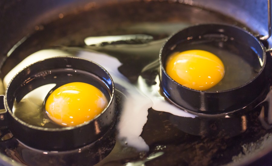 Frying eggs for the croque madames