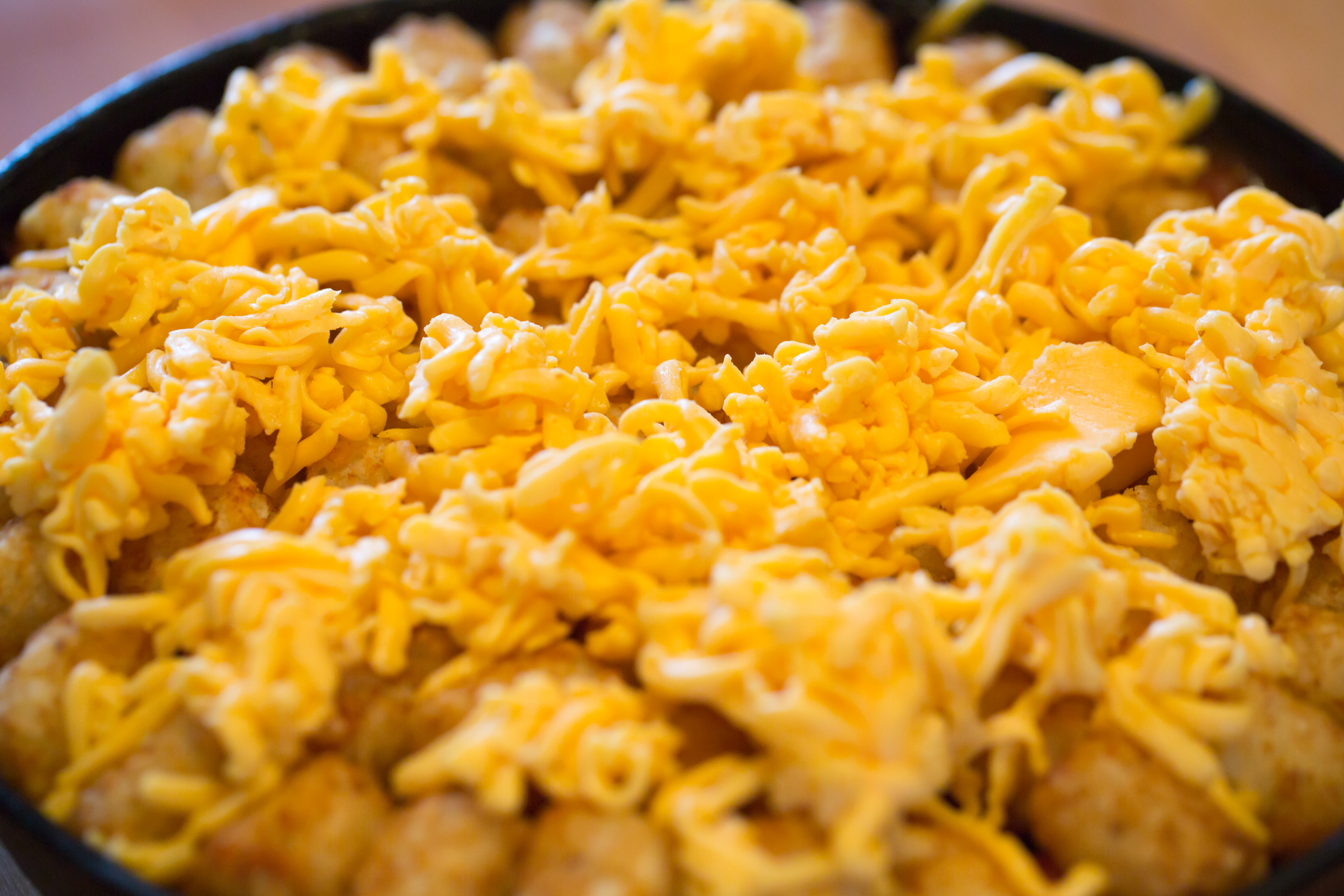 Sprinkle the grated Velveeta on top of the baked casserole and return to the oven