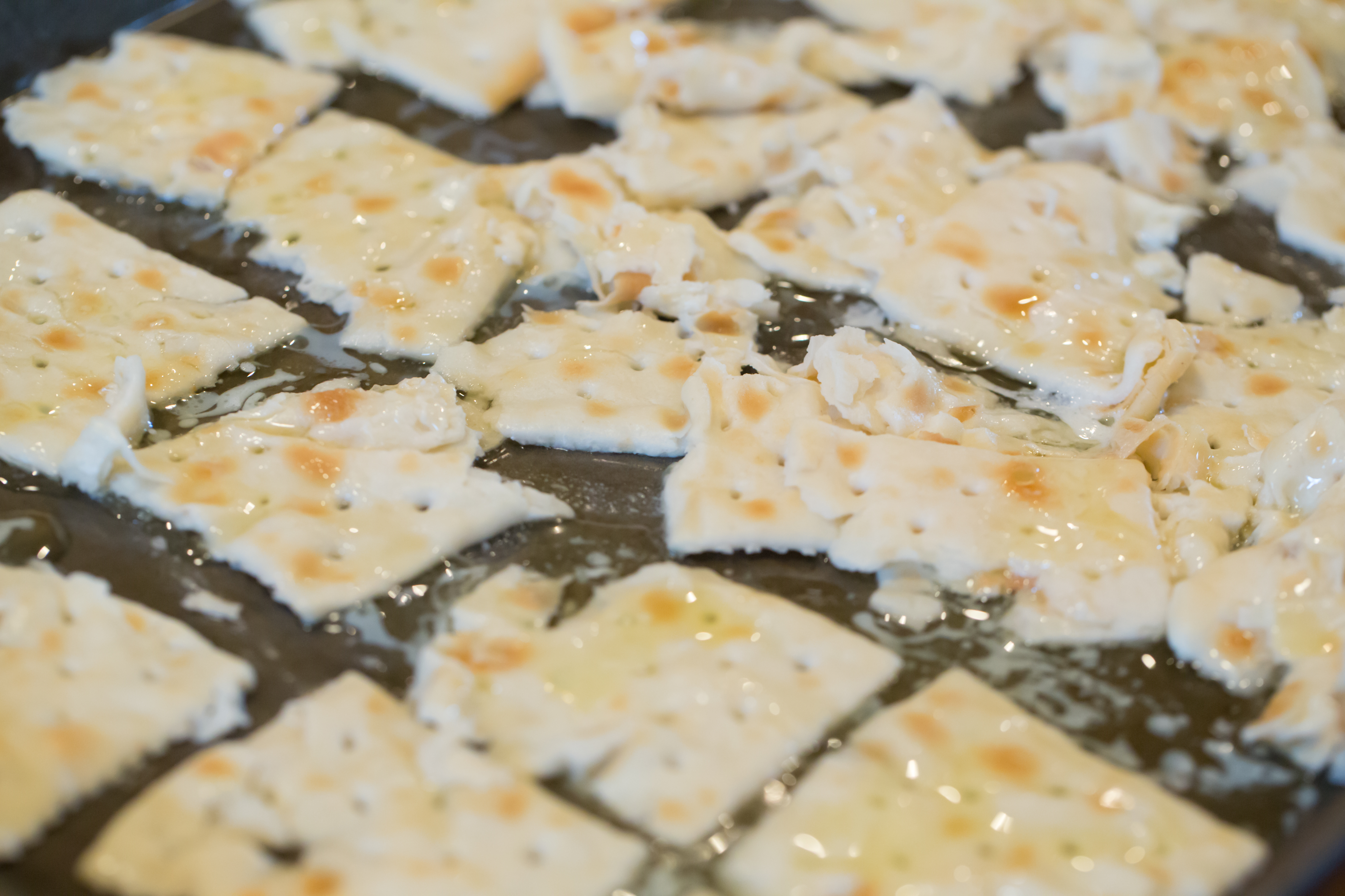 Saltines with butter ready for baking
