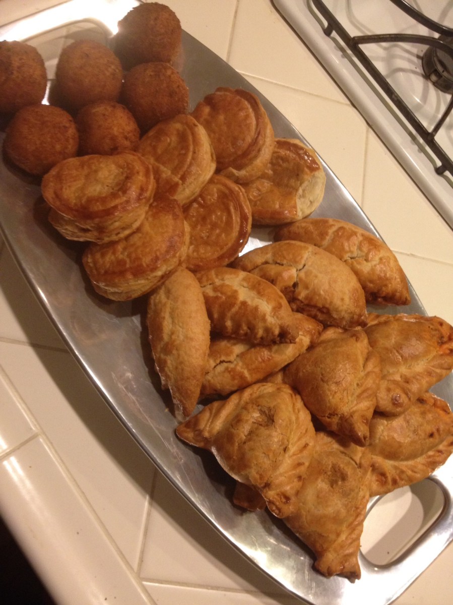 Porto’s potato balls, meat empanadas, chicken empanadas, chorizo empanadas (from top left)