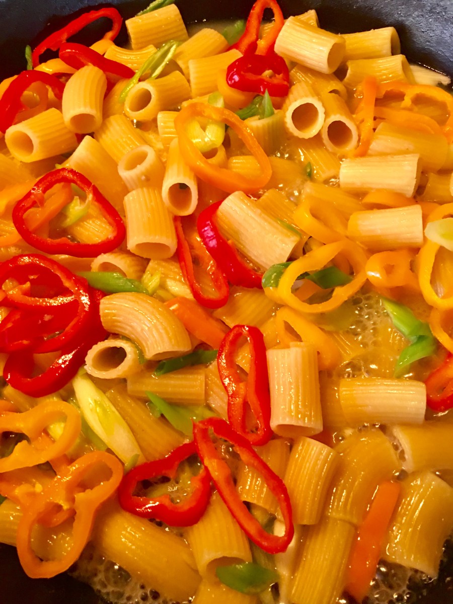 Peppers and scallions added