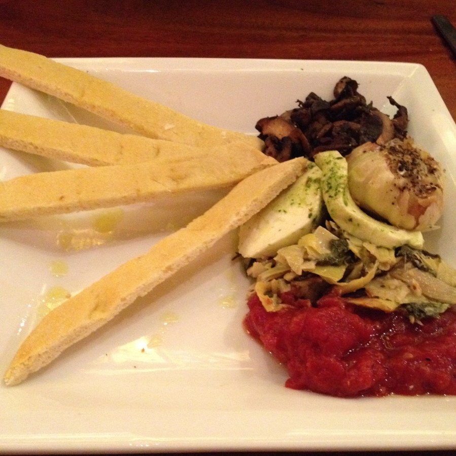 Bruschetta with tomato, artichoke, roasted garlic , and mushroom