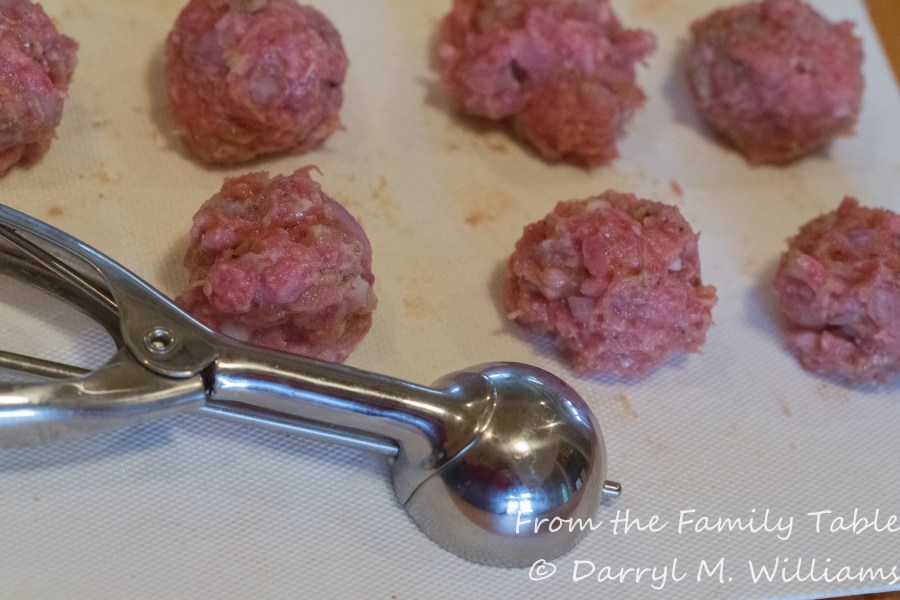Lamb meatballs sized with a “60” scoop (about 4 teaspoons each)