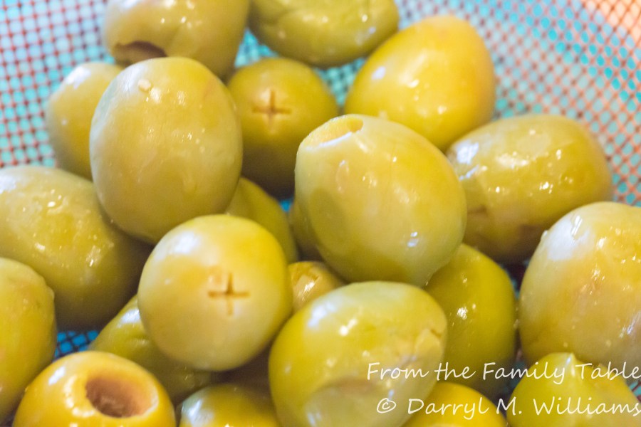 Olives rinsed, dried, and ready for stuffing