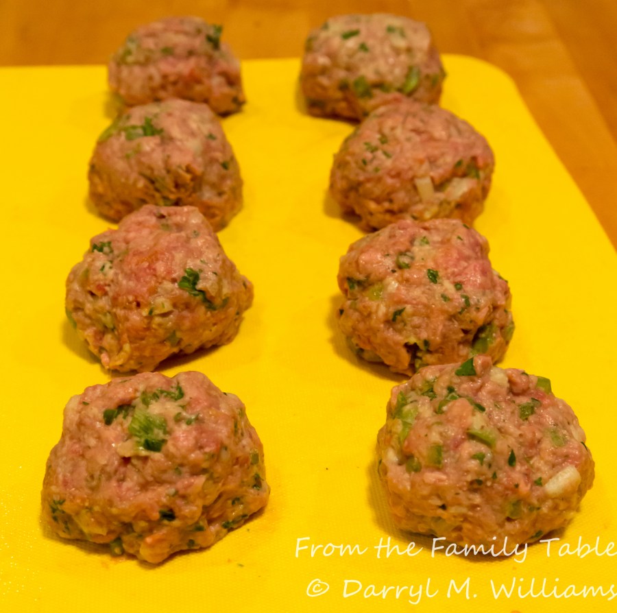 Meatballs formed and ready to roll in rice