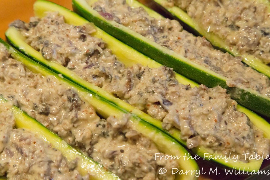 Zucchini stuffed with sausage mixture