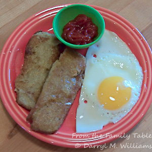 Fried egg, scrapple and ketchup