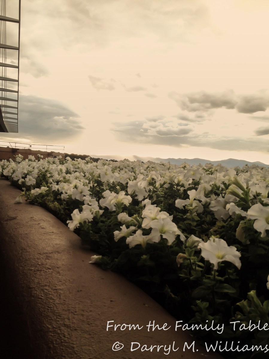 Petunias in the blaze of the setting sun