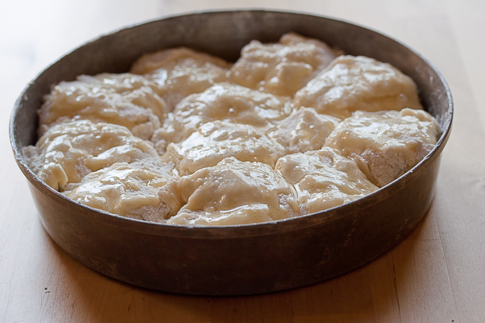 - Brush the chicken all over with the melted butter and place in the middle of a heavy, oven-proof pan (cast iron works the best) over a hot flame.