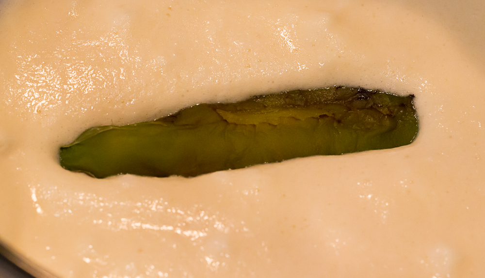 When I first learned of the availability of Hatch chiles in Los Angeles, I made the rash commitment to make chiles rellenos. That effort is widely recognized as an affirmation of a grandparent’s love for his or her family. That is because making chiles rellenos is a multi-step process – nothing really difficult, but definitely labor intensive. Still, it is always worth the work. The enthusiasm of the diners is much appreciated by the tired cook. Make plenty. Two to three per person is a good target, but serve them quickly after you fry them. A fresh, fluffy, crispy chile relleno is a thing to savor; an old soggy version is forgettable in an unforgettable way. We ate ours for Sunday family dinner along with Margaritas, Mexican rice, refried black beans, and de-constructed Caesar salad. Everyone seemed to enjoy the meal. And then Carol served an ice cream tart with a delicious nectarine sauce. The perfect ending.