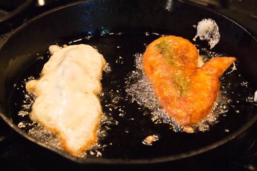 Coating and frying the chiles