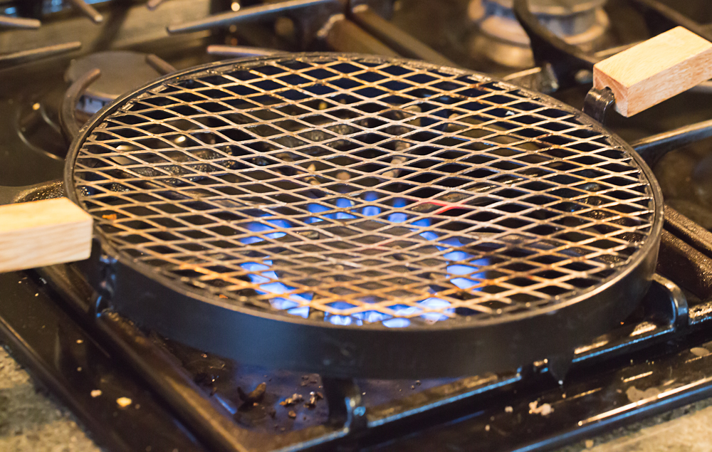 - Turn on your heat source and top with any special roasting device you might have. A gas flame works better than an electric range. You could use a wood fire. A broiler in your oven will also work. In any event, it is important that the source be very hot.