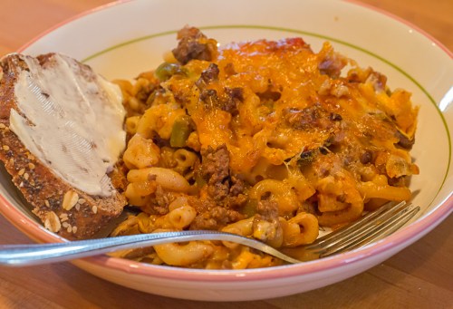 Carol and her family were in San Diego this weekend, so there was no Sunday family dinner. They had gone to watch the Notre Dame/Navy game. (ND won by a substantial score to remain undefeated.) Carol’s husband is a Notre Dame alum as are his father – and his brothers – and his sister. And they are all devoted sports fans. Carol’s husband goes to South Bend for football whenever he can, and the whole family often comes to LA when Notre Dame is playing nearby, usually against USC. The pilgrimage left us by ourselves, and so I thought Sunday would be a good time to clean out the refrigerator. There was a sweet potato that needed to be used. (It had tiny leaves appearing.) There was a potato that also needed to be used, along with a package of ground beef that I had bought the day before without a clear idea for it. The days have gotten cooler, so something like cottage pie sounded good. Why not top it with sweet potato mash instead of/along with the usual mashed potatoes? Done.