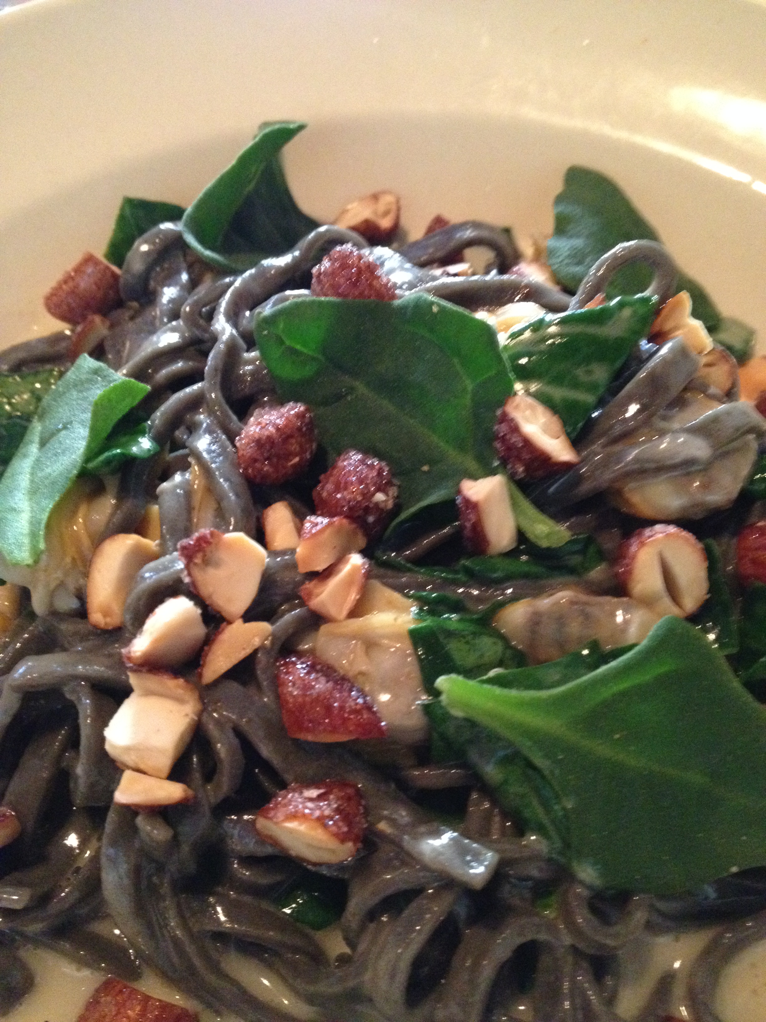 Beef tartare with cucumber yogurt was delicious, but I was more partial to the tagliatelle Bolognese with marrow and crispy leaves of kale.