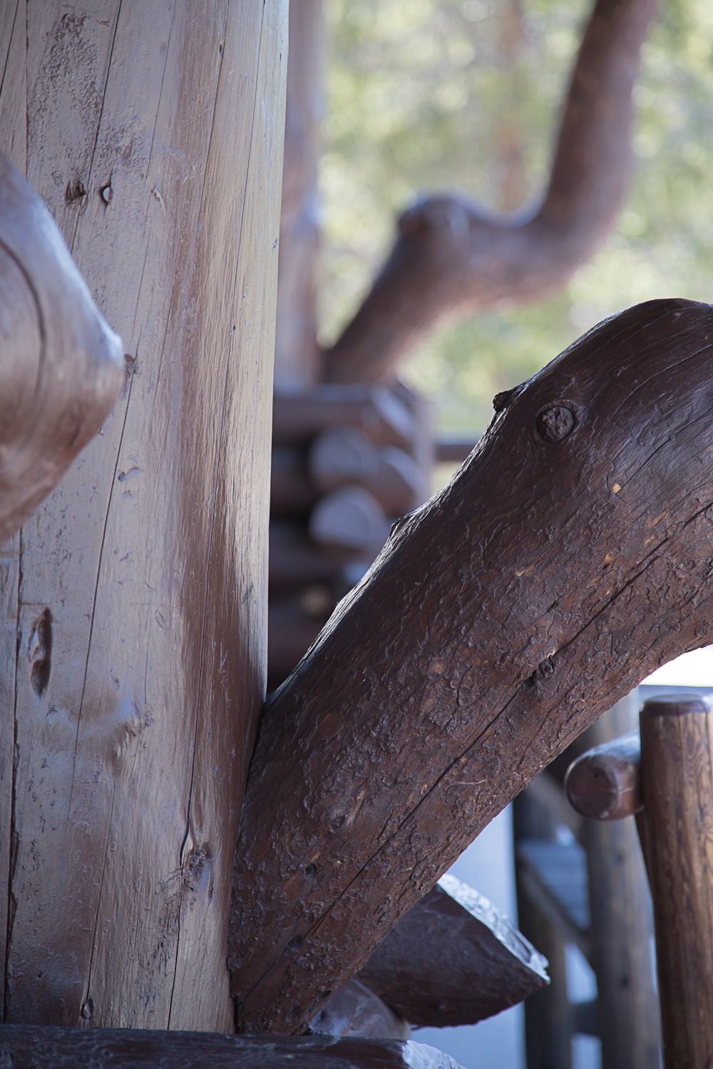 Detail of support on verandah, Old Faithful Inn