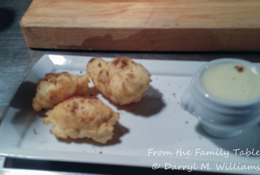 Porcini-dusted donuts and raclette sauce